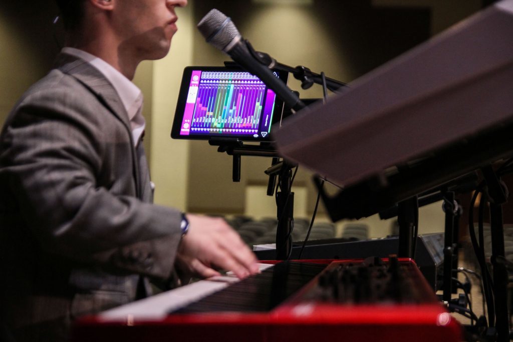 Un’unità KLANG:fabrik fornisce 8 mix stereo che vengono utilizzati da 4/6 musicisti sul palco durante i servizi religiosi, che utilizzano anche i due amplificatori cuffie KLANG:quelle collegati con un singolo cavo su rete DANTE, in modo che possano creare i propri mix individuali per ciascuna esibizione.